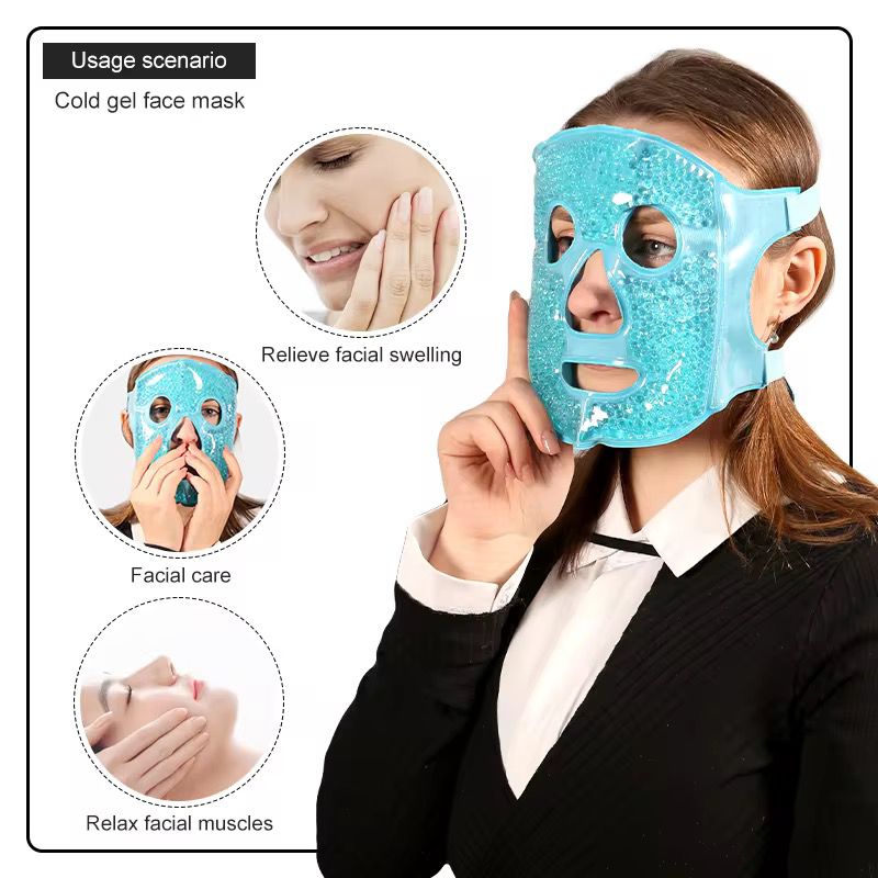 Gracias a sus bandas elásticas ajustables, la máscara se adapta perfectamente a cualquier circunferencia de cabeza. Ya sea que necesites una compresa fría o caliente, esta máscara es versátil y fácil de ajustar para un uso personalizado.