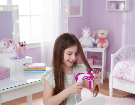 Solo hay que colocar un mechón de cabello, presionar y listo: la trenza aparece sola. Funciona en cabello liso, rizado o rebelde, y siempre queda bien. Es ideal para las mañanas rápidas antes del colegio o para jugar a ser estilista en casa.